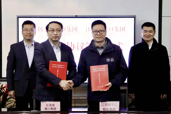 12月21日,扬子江船业集团与江苏省港口集团有限公司战略合作协议签订仪式在南京下关大厦举行。江苏省港口集团有限公司副总经理谭瑞兵先生,我集团副董事长张宏飞先生代表双方签署了战略合作协议。江苏省港口集团党委副书记、总经理关永健先生,我集团董事长兼总经理任乐天先生,江苏苏港航务工程有限公司执行董事金志忠先生等嘉宾共同见证。