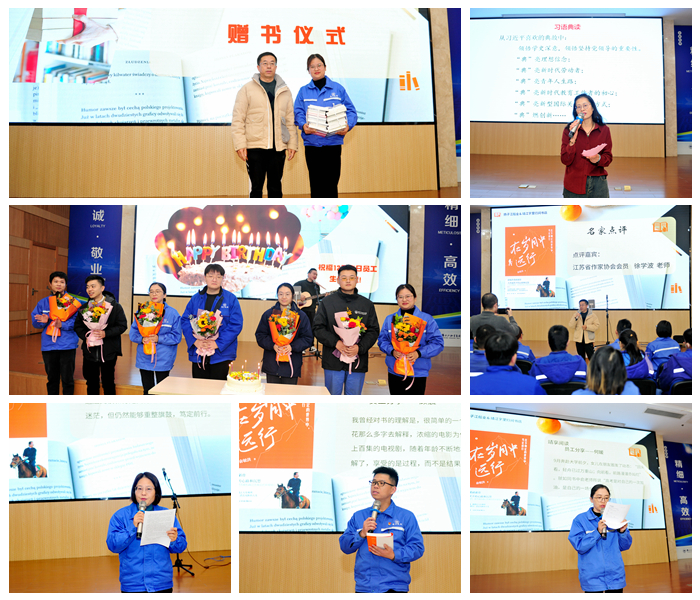 活动中,高级历史老师、国家二级心理咨询师姚北平带领大家进行了《心有大我 强企有我 至诚报国》为主题的“习语典读”分享。来自集团综合管理部的多位员工,分享了近期阅读《在岁月中远行》一书后,关于行走、关于阅读和爱的意义,并结合生活、工作实际畅谈收获感悟。江苏省作家协会会员徐学波老师代表市委宣传部,向我司捐赠一批图书,助力企业充实职工书屋、推广阅读角等阵地建设,更好地搭建阅读交流平台。结合大家的读书分享,徐老师还作了延伸点评。