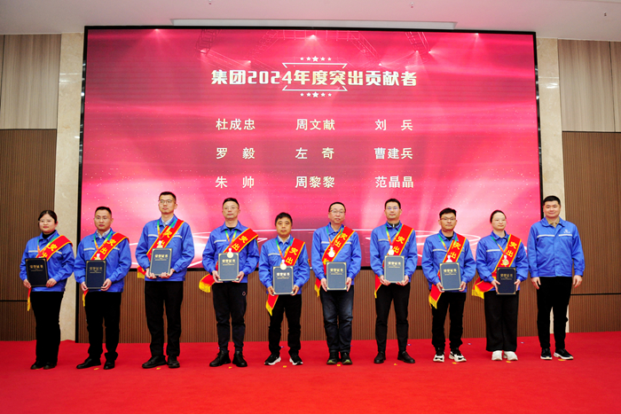 董事长任乐天为获得“2024年度突出贡献奖”荣誉的杜成忠、周文献、刘兵、罗毅、左奇、曹建兵、朱帅、周黎黎、范晶晶共9人颁发金牌以及荣誉证书。