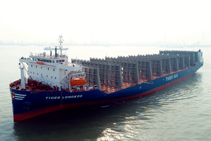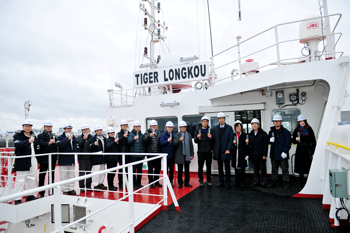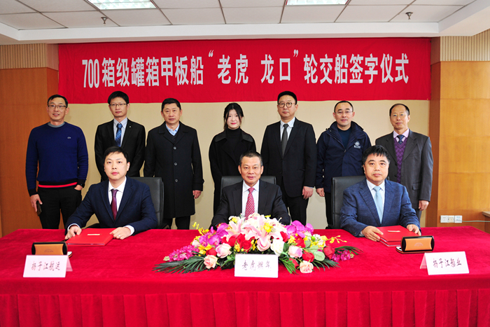 1月6日,我集团与老虎燃气联合研发,由新扬子造船建造的集团首制700箱级罐箱甲板船“TIGER LONGKOU”轮顺利交付。老虎燃气董事长薛朝春先生,我集团副总经理杜成忠先生,扬子江航运公司财务总监孙剑平先生分别代表各方签署交船文件。老虎燃气(上海)有限公司总裁许俊峰先生,中船动力副总经理张仲领先生,我集团总经理助理吉宏飞先生以及中国船级社驻厂办等多方嘉宾共同见证新船交付。