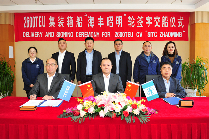 10月20日上午,我集团新扬子造船为海丰国际建造的第25艘新造船“SITC ZHAOMING”(海丰昭明)轮交付。上海海丰船舶管理中心总经理李瑞民先生,我集团副总经理杜成忠先生,副总经理张涛先生分别代表各方签署交船文件。