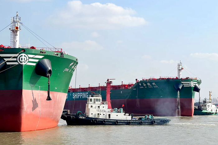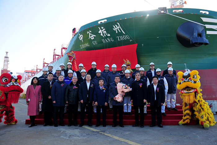 “中谷杭州”轮和“中谷福州”轮两船同一天进坞搭载、下水,在同一天试航、成功返航,并在同一天交船、命名,此举开创了我司同一系列的两艘船所有节点保持同步的记录。该两船是10艘系列船中的第三、四艘,本批次两艘船也借鉴了前两船的建造经验,汲取了船东在船舶营运过程中的反馈意见,并在建造过程中不断优化、有效提升。建造过程中,得益于中国船级社、SMT现场监造组和相关各方给予的鼎力支持和大力协助,以及中谷船东的充分信任和有效沟通,实现了两船保质提前交付。