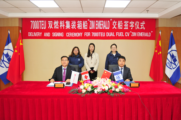 12月14日,在各方代表的共同见证下,SEASPAN公司驻我司新造船现场办经理南相福先生与我集团副总经理兼新扬子造船总经理杜成忠先生分别代表双方签署“ZIM EMERALD”交船文件。真诚祝愿她一帆风顺、航程万里,顺达货满,为船东和合作各方带来好运、荣耀和财富。