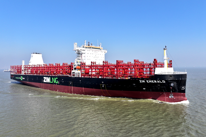LNG双燃料7000TEU集装箱船“ZIM EMERALD”轮总长272m,型宽42.8m,型深24.6m,搭载B型9镍钢LNG燃料罐。该船于2022年11月开工建造,在SEASPAN公司现场监造组、DNV船级社、船厂上下员工等多方通力合作下顺利完工,同型共有15艘系列船,该船为系列船中的第三艘,交付后投入ZIM公司(以星航运)船队运营。