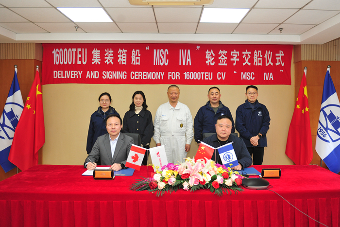 12月14日,SEASPAN资产管理部项目经理苏小华先生,我集团总经理助理兼扬子鑫福总经理杨雪彦先生分别代表双方签署“MSC ILENIA”轮交船文件。建信金租船舶业务部、MSC项目监造组、我集团经营部等相关人员见证交船仪式。