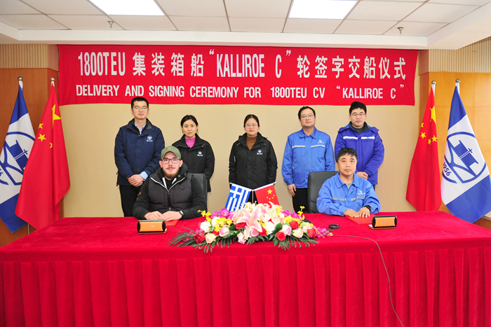 1月11日,在各方见证下,COSMOSHIP船东现场办经理DIMITRIOS MORAITIS先生与我集团副总经理兼新扬子造船总经理杜成忠先生分别代表双方签署交船文件。