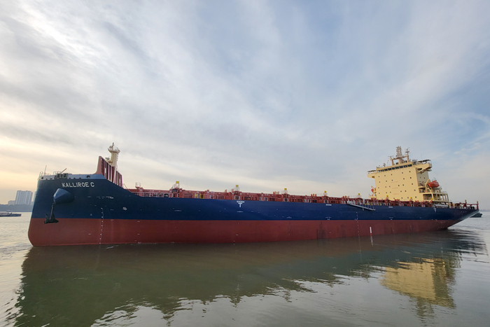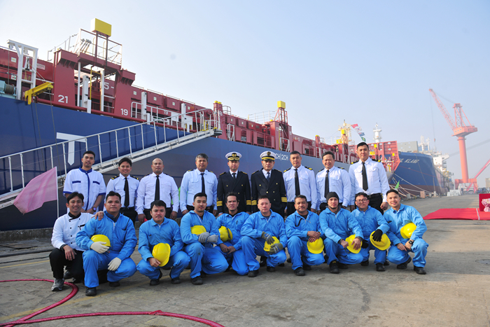 1月14日,我集团新扬子造船(扬子长博厂区)为希腊船东COSMOSHIP公司建成交付的一艘1800TEU集装箱船——“KALLIROE C”轮,从船厂码头解缆启航,投入船队运营。
