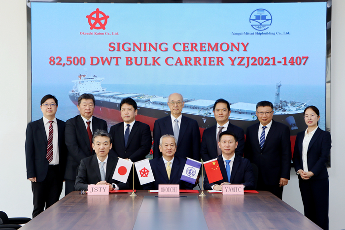 5月15日,大河内海运株式会社社长大河内啓介先生、我集团副总经理兼扬子三井总经理宋书明先生、扬子三井总经理助理中尾慎一先生代表签署了交船文件。