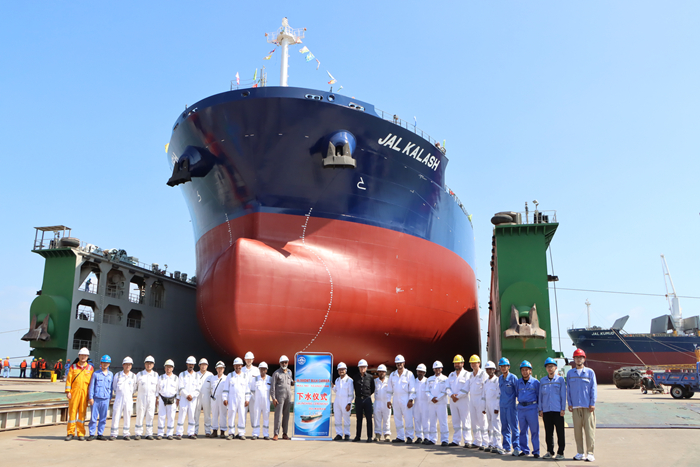 命名人王海艳女士将新船命名为“JAL KALASH”轮。Pradeep Unni先生为新船砍缆、掷香槟礼。鞭炮、礼花齐响,汽笛共鸣。祝福新船、随船船员航行平安,为建造方带来荣誉,为船东带来好运与财富。