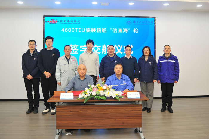 1月8日,信风海运物流总经理刘兴华先生、我集团副总经理兼新扬子造船总经理杜成忠先生分别代表船东方、船厂方签署交接船议定书。信风海运物流崔梓郁先生 、司征先生以及我集团副总经理吉宏飞先生现场见证。该船属于节能环保、适港性优、市场竞争力强的内外贸兼营集装箱船。投入运营后有助于船东进一步优化船队结构,为客户提供更优质的运输服务,提升公司的运营管理能力与市场竞争力。