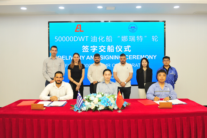 7月29日,在船东、船厂、船检等各方代表的共同见证下,Evalend船东代表Evangelos Simos先生与我集团副总经理兼新扬子造船总经理杜成忠先生签署“NARRATOR”轮交船文件。
