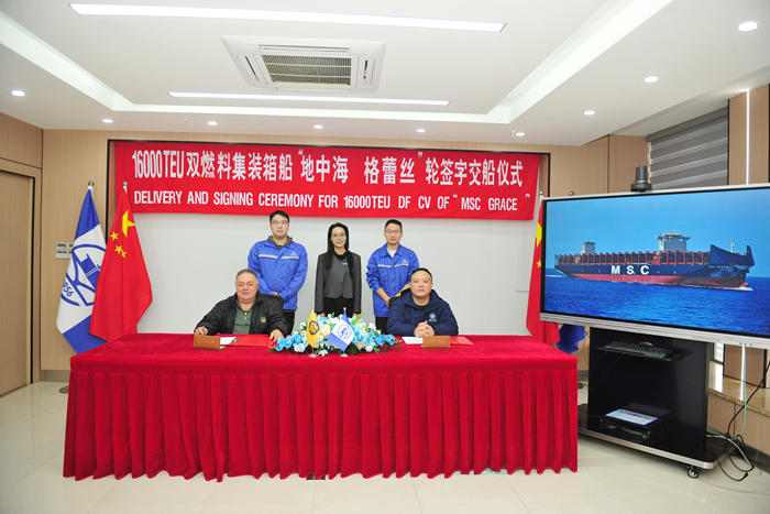 10月29日,地中海航运(MSC)新造船中国区经理CH Giuseppe Gargiulo先生与我集团总经理助理兼扬子鑫福造船总经理杨雪彦先生分别代表双方签署交船文件。
