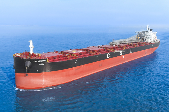 “CSL KANATA”轮总长229.00米,型宽32.26米,型深20.15米,设计吃水14.40米,入ABS船级社。该轮于2024年10月下旬批量切割,2025年4月中旬上船台,6月下旬出坞,11月23日圆满完成试航任务,各项试验结果均优于研发设定指标。
