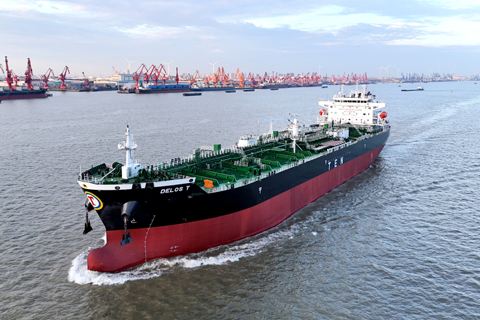 1月13日上午,我集团新扬子造船为船东TSAKOS建造的50000DWT油轮“DELOS T”轮,解缆离开船厂码头,交付投入运营。