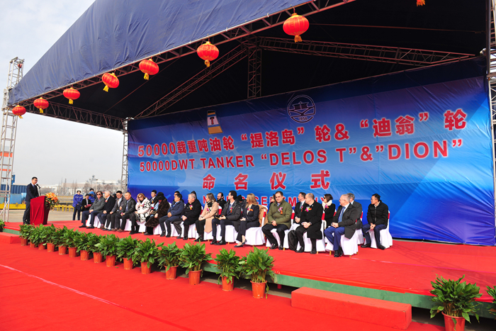 1月12日上午,我集团与船东TSAKOS共同为本船以及另一艘同型姊妹船举行了隆重的命名仪式。命名人CORINA LAZAROU女士、ELINA PAPAGEORGIOU女士,TSAKOS集团副主席VASSILIS PAPAGEORGIOU先生,劳氏船级社大中华区高级商务顾问薛茂根先生,我集团副总经理兼新扬子造船总经理杜成忠先生以及相关合作方领导和嘉宾出席了仪式。命名人CORINA LAZAROU女士将厂编N1521号新船命名为“DELOS T”轮。CORINA LAZAROU女士为“DELOS T”轮砍缆、掷香槟礼、拉响汽笛。在场嘉宾们纷纷祝福这艘承载着梦想与希望的巨轮,在未来的航程中乘风破浪、顺达货满,为船东、租家带来源源不断的机遇与财富!