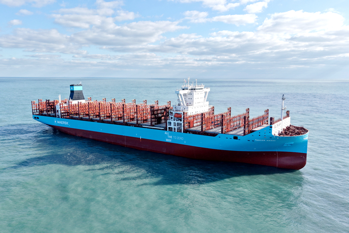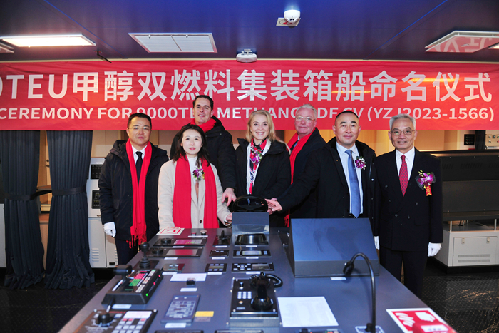 2023年6月,我集团与马士基公司在丹麦哥本哈根签订了6艘9000TEU甲醇双燃料集装箱船建造合同,新船计划于2026年至2027年期间建成交付。本次交付的是该批系列船中的首制船。船型总长274米,型宽45.6米,型深24.2米,载重吨约114000吨,入LR船级社。
