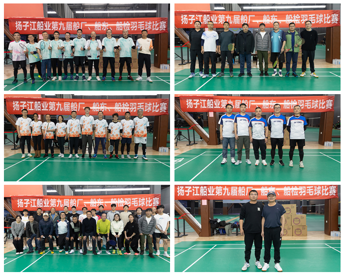 本周,扬子江船业第九届船厂、船东、船检羽毛球友谊赛在鹿羽羽毛球馆举行。来自LR、DNV、CCS、ABS四家船级社,部分船东现场办代表及我司技术中心、质量管理部等多个部门70余人齐聚一堂,以球会友。