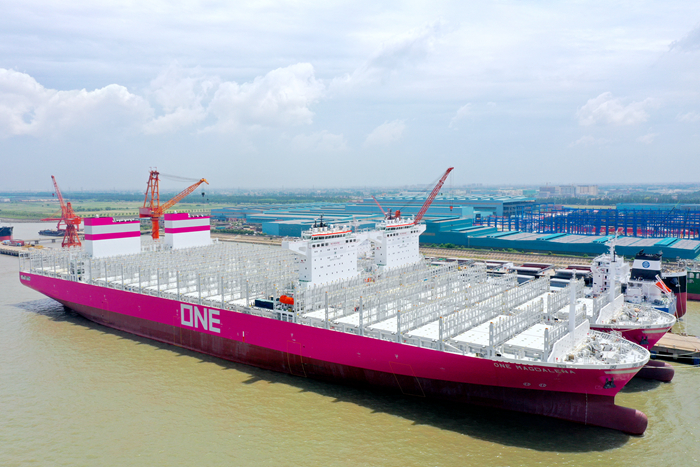 6月22日下午,蓝天下的江面清晰明丽,“ONE PARANA”轮缓缓驶离船厂码头,开启建成交付后的首航。该船是我集团扬子鑫福为SEASPAN船东建造的首制11800TEU集装箱船。