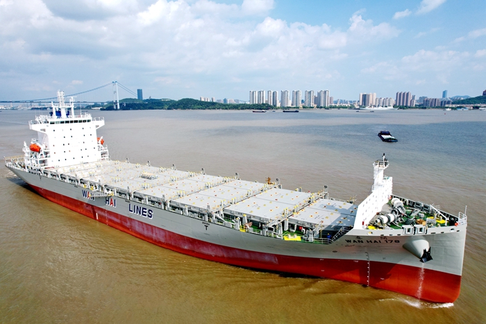8月2日,我集团扬子长博造船为上井物流建造的1800TEU集装箱船——“WAN HAI 178 阔春”轮,通过电签的方式交付,并在当日中午驶离船厂码头,开启首航。