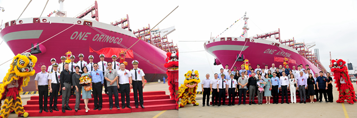 SEASPAN公司全球高级副总裁李堃先生,SEASPAN公司资产管理部副总裁J.J.迈耶先生,命名人朱晶磊女士,命名人董玉芳女士,特邀嘉宾谭卫林博士,中信保项目保险业务处处长刘琦先生,LR船级社大中华区运营总经理施兴泰先生,以及我集团总经理助理吉宏飞先生、扬子鑫福总经理杨雪彦先生等领导和嘉宾出席了命名仪式。朱晶磊女士将X2270船命名为“ONE ORINOCO”轮,为新船砍缆并掷香槟礼,祝福新船一帆风顺,班班满载。董玉芳女士将X2271船命名为“ONE AMAZON”轮,为新船砍缆并掷香槟礼,祝福新船顺达货满,平安启归。