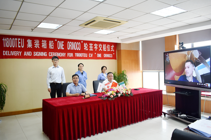 8月26日,SEASPAN船东与我集团通过视频会议方式完成交船。SEASPAN公司资产管理部副总裁J.J.迈耶先生等通过视频见证交船。SEASPAN船东新造船现场办经理南相福先生,扬子鑫福造船总经理杨雪彦先生代表各方签署交船文件,新船较合同约定提前35天交付。另外,“ONE AMAZON”轮计划9月上旬交付船东。