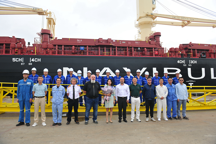 汤春燕女士为新船命名,并为新船剪彩、掷香槟,为新船及随行船员祈福祝愿,她祝福新船在未来的航程中大展宏图、一帆风顺,为船员带来欢乐,为船东和建造方带来荣誉和财富。“SHIPKA”轮由我集团扬子鑫福造船建造,计划于9月2日扬帆起航。