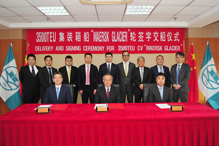 5月31日上午,我集团新扬子造船向船东日本LEPTA交付一艘3500TEU集装箱船“MAERSK GLACIER”轮。在相关方的共同见证下,船东和船厂代表在新扬子造船会议室签署交船文件。