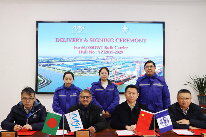 On January 17, at 9:10 a.m., the second 66000DWT bulk carrier "MEGHNA PRESTIGE" (under the Bangladesh flag) built byour group, Yangzi Mitsui Shipbuilding(YAMIC), for the Bangladesh ship owner MEGHNA, was successfully delivered.