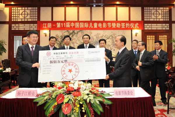 Jangsu Yangzijiang Shipbuilding Group Ltd. sponsors RMB 5 million to the Eleventh China International Children’s Film Festival.