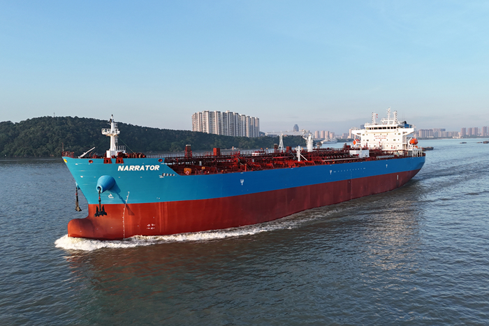 8月2日中午,我集团新扬子造船为Evalend船东建造的第六艘50000DWT MR油船“NARRATOR”轮交付离厂,投入运营。该船于2024年8月上旬开工建造,2025年2月中旬上船台搭载,4月下旬下水,7月初完成海上航行试验,各项试验结果符合设计标准。该船是六艘系列船中的收官船,入级劳氏(LR)船级社。
