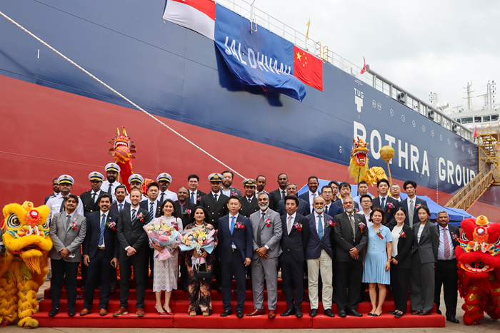 9月28日,我集团扬子三井造船为新加坡船东建造的第四艘新一代绿色环保型50000DWT MR油轮“JAL DHVANI”轮交付离厂,开启首航。
