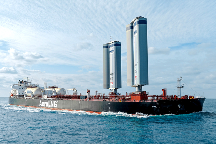 该型船配置有2个C型甲板燃料罐,蒸发率为0.4%/天。主机采用高压燃气系统,发电机和锅炉采用低压燃气系统。甲板安装液控可折叠、旋转三翼高硬质翼帆 (WindWings)2具,有效高度37.5米,宽度20米。该船风帆通过机械液压传动系统实现升降、旋转和展翼,为船舶提供额外推力,从而减少主机的燃油消耗。在风帆有效运行中,可节约5~10%的日均油耗,能效设计指数(EEDI)降低12%,减少碳排放的同时有效提升船舶运营效能。